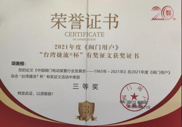 繼2021年2月、4月項(xiàng)美根名譽(yù)董事長(zhǎng)撰寫(xiě)的論文《中國(guó)閥門(mén)電動(dòng)裝置行業(yè)發(fā)展史——1965-2021》在《閥門(mén)用戶》發(fā)表后,最近又分三次分別...